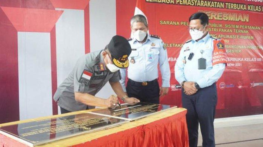 "Artinya, semua akan dimanfaatkan semaksimal mungkin guna pengembangan pertanian dan peternakan di Lapas Terbuka Kendal," jelasnya. Usai peresmian, Kepala Kanwil Kemenkumham Jateng yang didampingi Kepala Divisi Administrasi, Jusman dan Kepala Bagian Pelaporan dan Hubungan Masyarakat, Budhiarso Widhayarsono, menyempatkan diri melihat secara langsung bagaimana proses pembuatan dan pengolahan pakan ternak. Dilanjutkan dengan meletakkan batu pertama pembangunan industri kompos dan biodigester serta memotong pita tanda diresmikan ruang layanan.