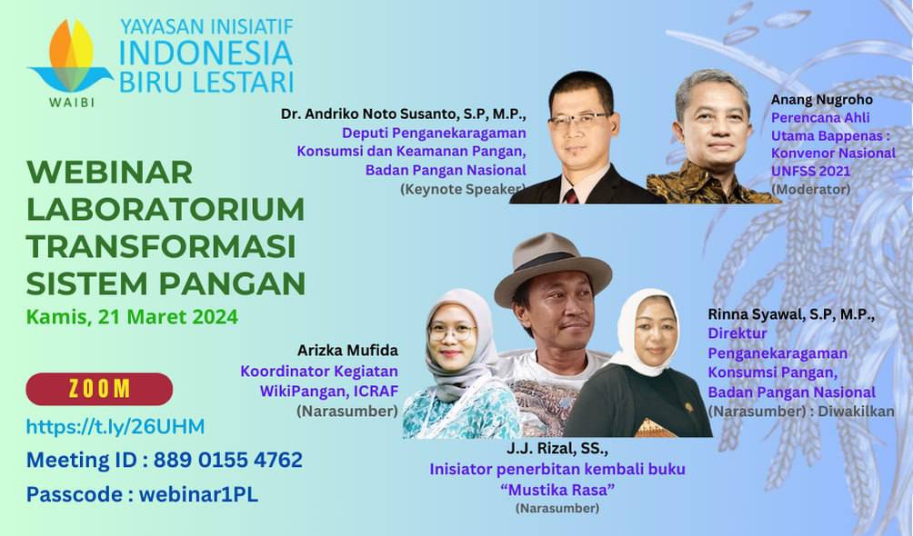 Serial Webinar III dalam Laboratorium Transformasi Sistem Pangan diselenggarakan pada tanggal 15 Mei 2024 dengan tema “Potensi Pangan Akuatik Yang Beranekaragam dan Bergizi Seimbang Sebagai Food-Based Nutrition Intervention untuk Pemenuhan Kesehatan Masyarakat.” Serial Webinar ini berfokus pada kegiatan yang bertujuan untuk berbagi pengalaman dan pandangan yang dapat mengidentifikasi kesenjangan, peluang, dan praktik-praktik terbaik dalam menerapkan transformasi sistem pangan di Indonesia. Hal ini untuk memastikan pula bahwa pendekatan sistem diambil untuk mengidentifikasi peluang dan tantangan yang dihadapi sistem pangan dan stakeholder dapat memahami proses-prosesnya diserta data dan informasi yang memadai dalam menyusun rekomendasi kebijakan.